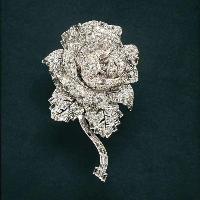 其时,知名珠宝的流转是各国王室政权与财富传承的缩影。英国王室的传世珠宝更是不可胜数,此次来到成博展出的一枚由铂金与钻石制成的玫瑰胸针,便是伊丽莎白女王二世的妹妹玛格丽特公主在女王加冕礼上佩戴过的。