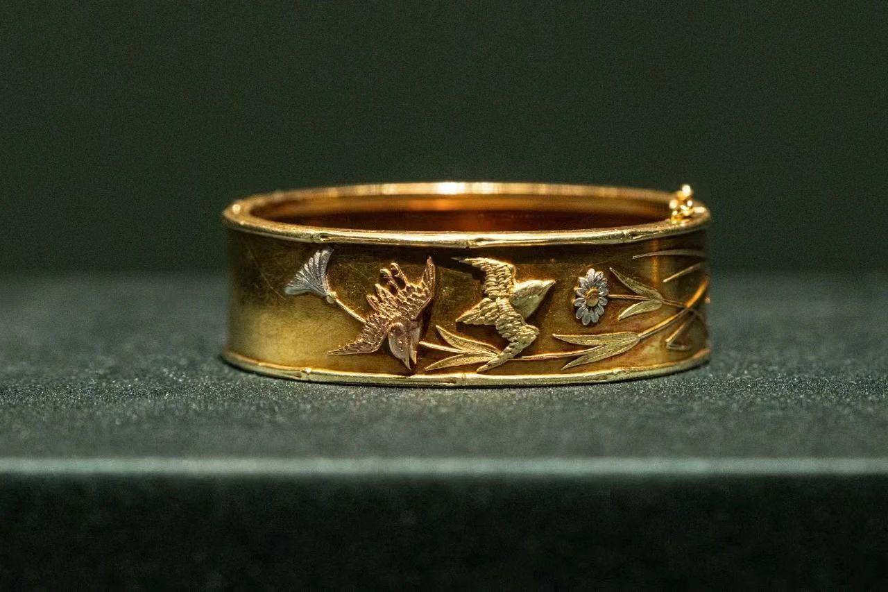 在“风华万象”的展览现场,有一组出自法国麦兰瑞家族之手的黄金珐琅珠宝。麦兰瑞家族主要客户是欧洲王室,自17世纪初创建至今已有400多年的历史,最著名的标签就是“王后的珠宝商”。
