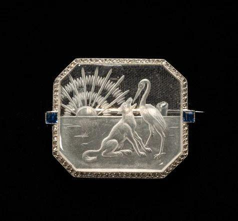拉利克将这则故事和珠宝设计完美结合起来,为这枚晶莹剔透的水晶胸针赋予了一抹高雅的文学趣味。