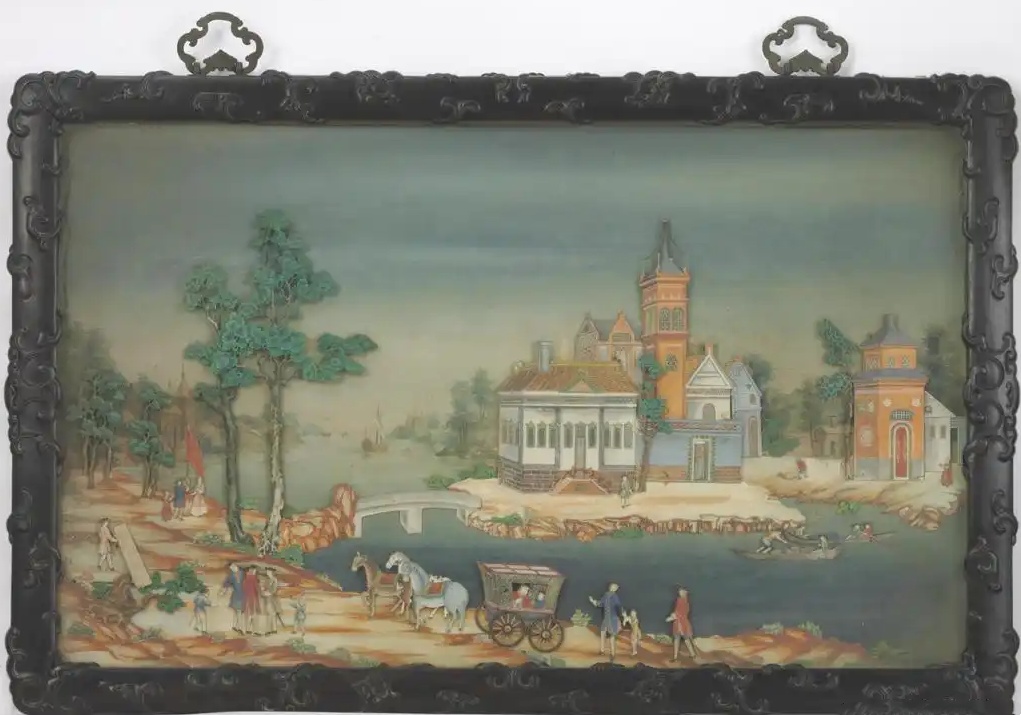 这两件挂屏,如同历史的双眸,从不同视角深情凝视着那段辉煌的中西贸易岁月。建筑之巍峨、人物之鲜活、交通工具之繁复,皆被匠人以刀代笔,细细勾勒,不仅展现了清代工匠的精湛技艺,更生动再现了那个时代中西文化交融的独特风貌,令人仿佛穿越时空,亲历那段波澜壮阔的历史篇章。