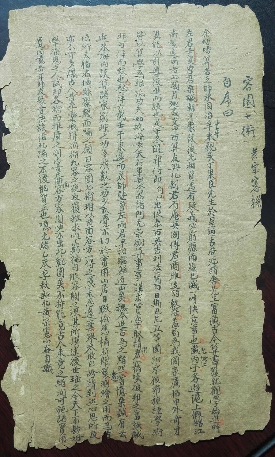 清末数学家黄宗宪《容圆七术》自序手稿(仅见)
