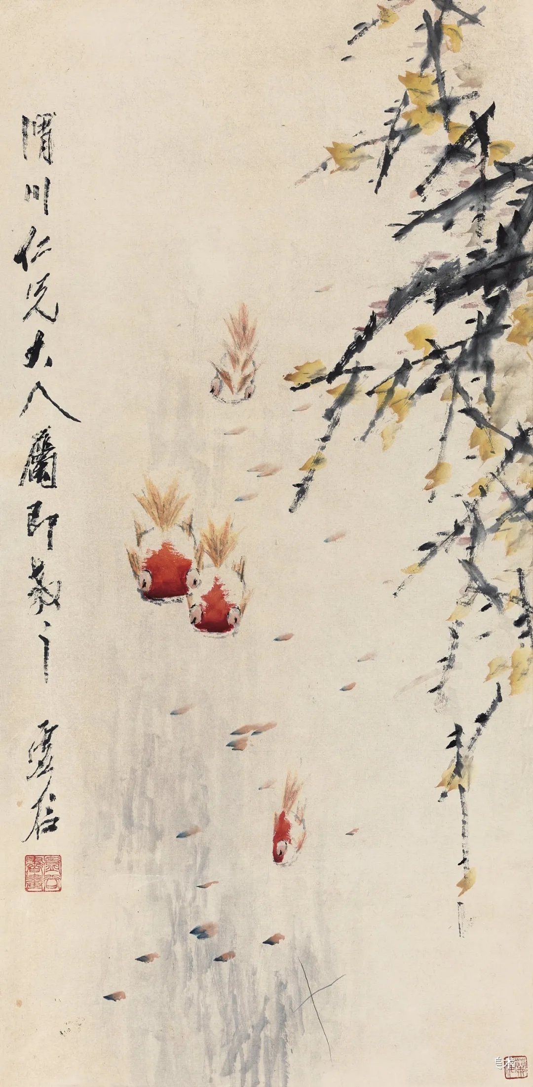 清 虚谷 柳塘金鱼