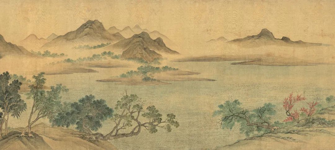 清 恽寿平 湖山春暖图(局部)绢本 长卷 设色 57.6×618.2厘米 天津博物馆藏