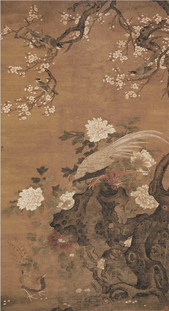 明 吕纪 牡丹锦鸡图 184.3×100cm 国画 中国美术馆藏
