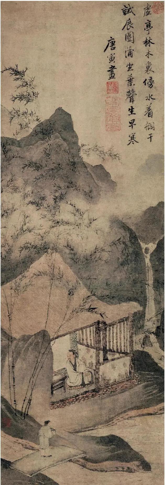 明 唐寅 草屋蒲团图 85×28cm 纸本设色 辽宁博物馆藏
