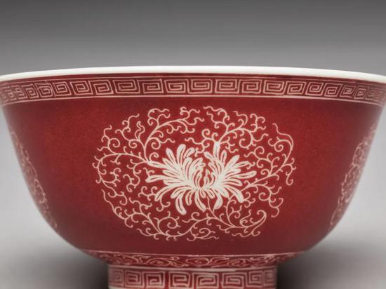清 乾隆 珐琅彩洋红地剔花团花碗