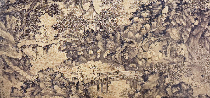 明 谢时臣《名园雅集图》(局部)纵31.5厘米 横189.5厘米 广东省博物馆藏