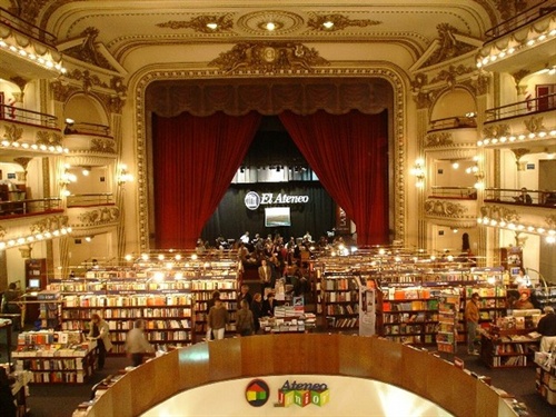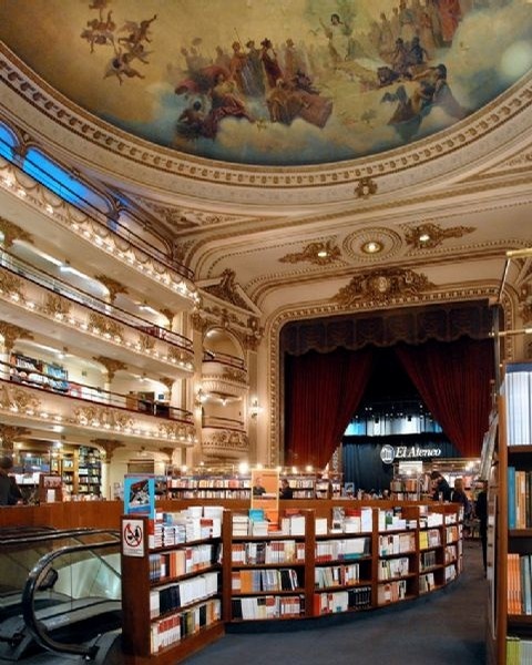 这是由布宜诺斯艾利斯闹市一家老剧院改造成的豪华书店。 书店共3层,营业面积2000多平方米,号称南美第一。