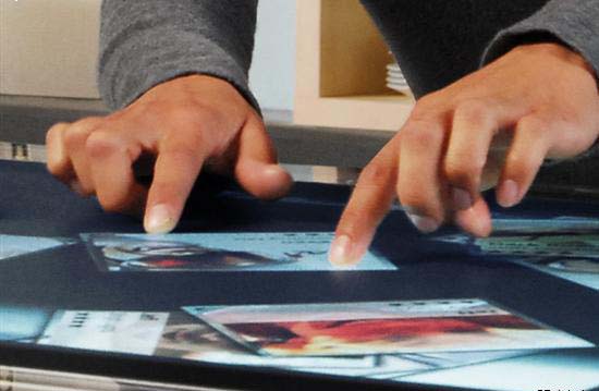 该显示器可以直观地显示各种数字内容,用户只需伸出手指,就能轻松浏览各种图片、音乐、视频文件,而且Surface可以接收多个触摸输入信号,因而支持多人同时操作,最多可以十来个人一起分享。