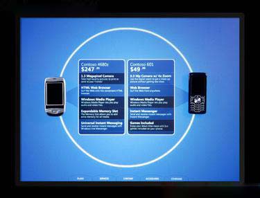 在《华尔街日报》的“D: All Things Digital”会议上,微软演示了一种“Surface Computing”(表面计算)技术,并由此组建了一个“Surface”平台,无需鼠标和键盘,只用双手和触摸屏,就能即时、交互地轻松管理自己的数字内容。