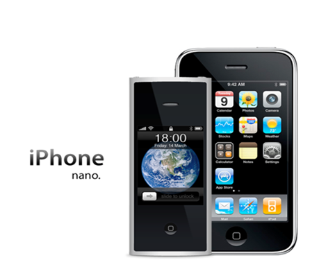 是iPhone Nano?从图像上就能看出这是一个非常好的创意。它的概念出自将iPhone 3G和Nano G4相结合。