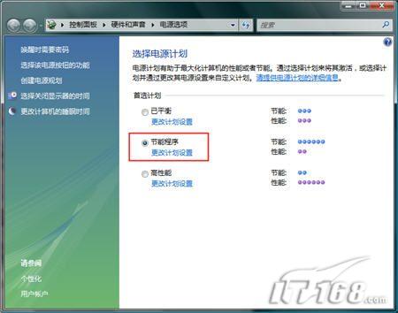 在Vista中,你可以点击“开始”按钮并在搜索框中输入“电源选项”。点击“节能程序”电源选项,接着点击“更改计划设置”。