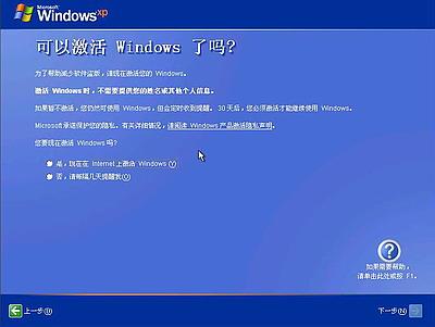 已经建立了拨号连接,微软当然想你现在就激活XP啦,不过即使不激活也有30天的试用期,又何必急呢?选择“否,请等候几天提醒我”,点击“下一步”按钮,如下图25所示
