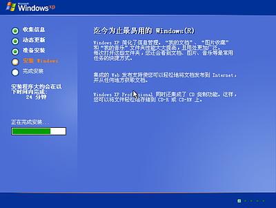 继续安装,到这里后就不用你参与了,安装程序会自动完成全过程。安装完成后自动重新启动,出现启动画面,如下图19