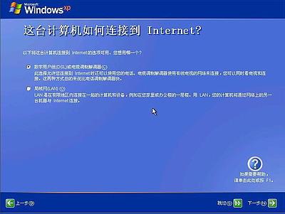 点击右下角的“下一步”按钮,出现设置上网连接画面,如下图21所示