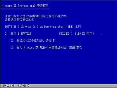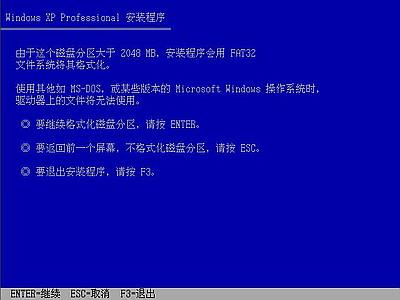 由于所选分区C的空间大于2048M(即2G),FAT文件系统不支持大于2048M的磁盘分区,所以安装程序会用FAT32文件系统格式对C盘进行格式化,按“Enter”键回车,出现下图7所示