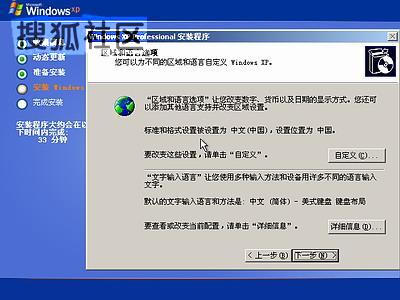区域和语言设置选用默认值就可以了,直接点“下一步”按钮,出现如下图11
