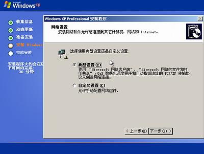 让你选择网络安装所用的方式,选典型设置点“下一步”出现如下图17