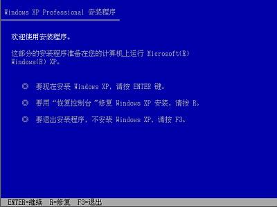 全中文提示,“要现在安装Windows XP,请按ENTER”,按回车键后,出现如下图2所示