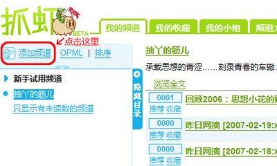 抓虾,国内最为知名的基于RSS阅读的信息收藏和共享站点,特专门截几张图,写个教程,帮助博友订阅博客,若仍未明白,可配合抓虾帮助来看。