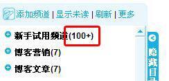 5.随后,将提示添加频道成功,在左侧栏内,即出现博客名称,括号中显示出未读文章数目。