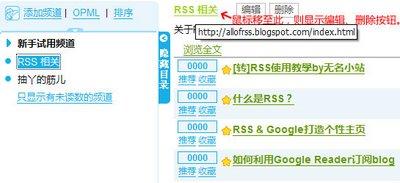 8.将鼠标移至主页面中的博客标题旁,即可显示出编辑/删除按钮,方便RSS FEED的管理操作。