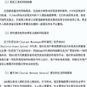 这些都是基本的网络服务,比如电子邮件对应现实中的邮件,FTP对应现实中的快递,个人Web网站对应现实中的个人照贴海报等等。它们的共同特点是,信息不规范且孤立,只有极少数有心经营者能够将其发展成拓宽交往的有效工具,更多的人将其停留在简单日常事务处理的一般服务而未予以重视。
