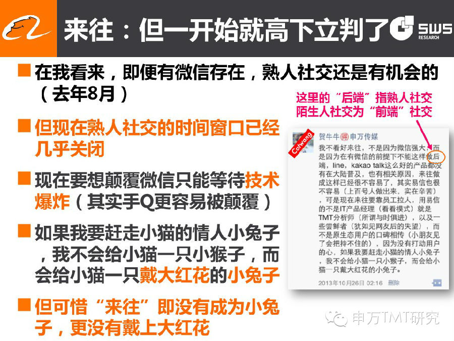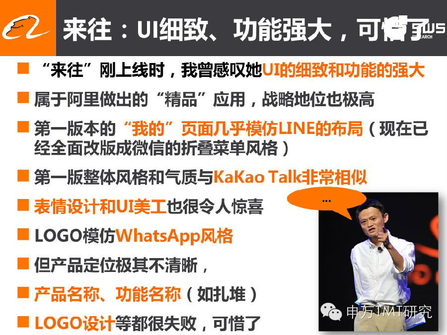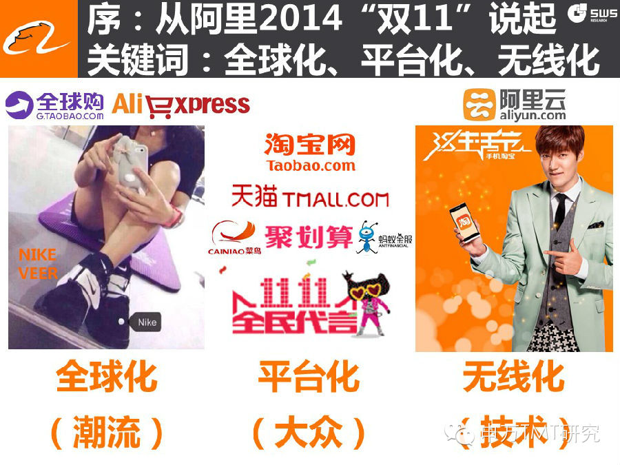 2014年10月17日贺华成阿里巴巴集团演讲PPT(163页),较腾讯演讲PPT增加了大量新内容,进一步梳理了中国青少年亚文化的现象和实质,并结合阿里的无线战略作了分析。