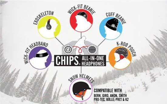 CHIPS的设计出发点是滑雪者和滑雪板玩家,当你站在山顶上时,尝试打电话或者控制音乐会让你感到沮丧。这款耳机支持所有滑雪头盔,但除了滑雪,CHIPS也可以应用到其他的运动,例如跑步、骑车和滑板,只要相关的耳机新配件就可以,包括头巾、无沿便帽、小袋和耳机外壳(CHIPS可以镶嵌进去,变成传统耳机模样)。