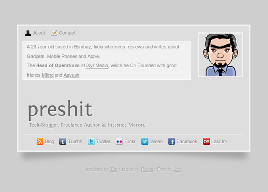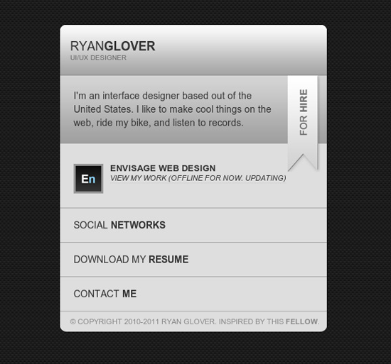 其实有时候,我们并不需要一个网站,只是需一个能展示自己信息的网络名片,今天就分享:30个优雅的浅灰色网络名片设计,如果有你喜欢的,你也可以给你自己设计一个哈。