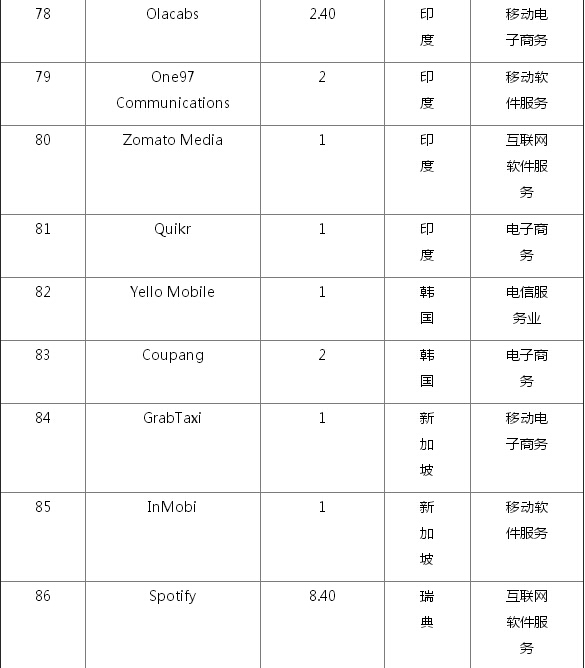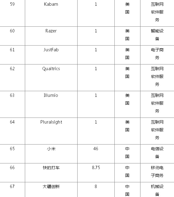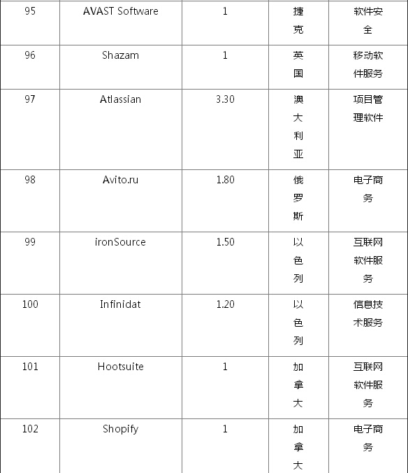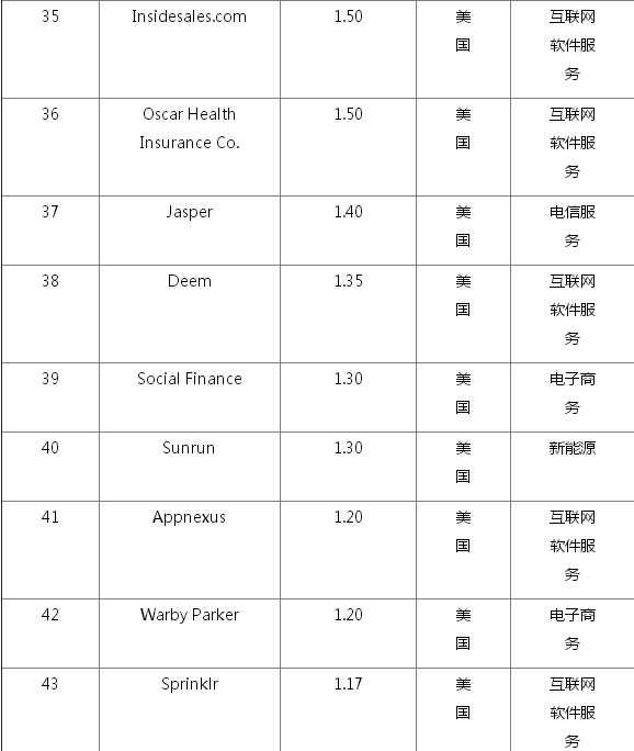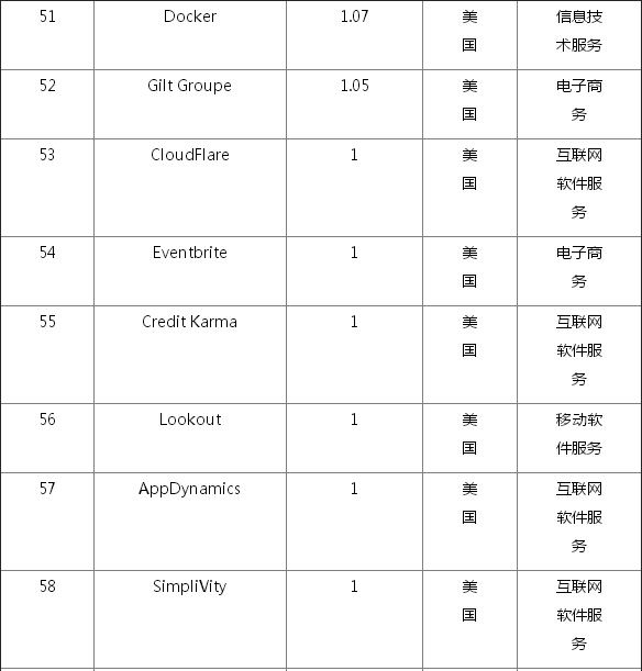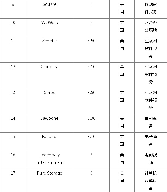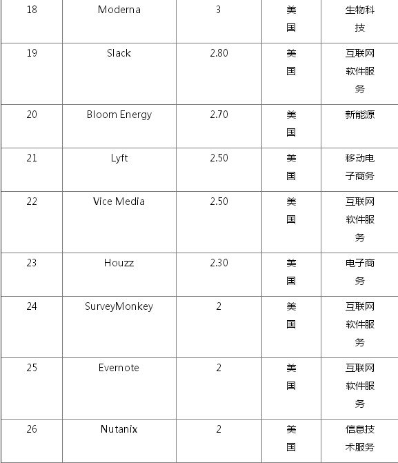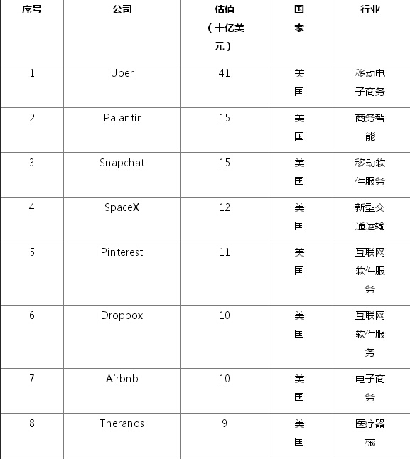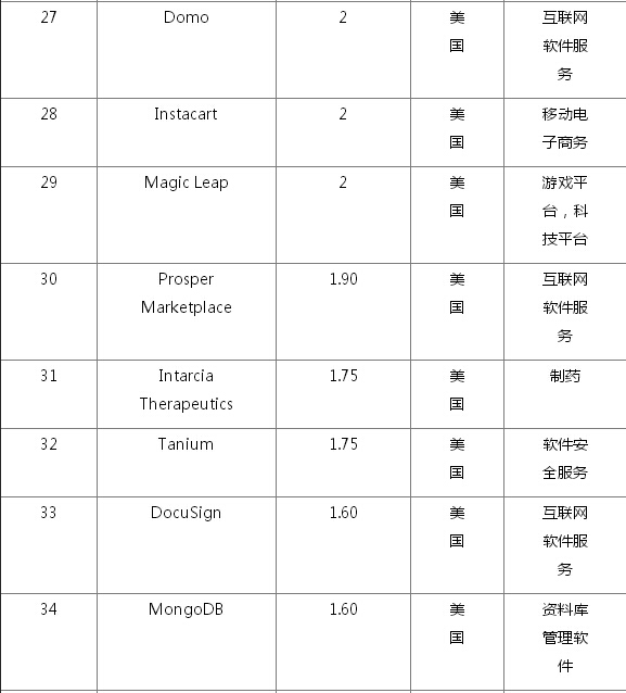 全球102家估值过10亿美元的初创企业名单