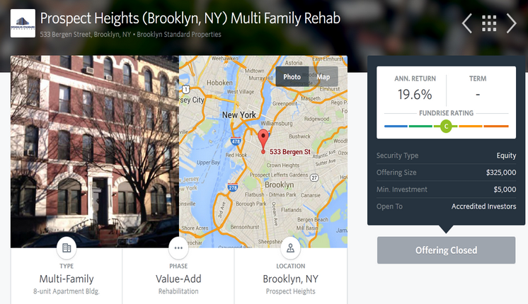 Fundrise普通股众筹项目非常特殊,是三个平台中最特别的一个。下图是一个例子: