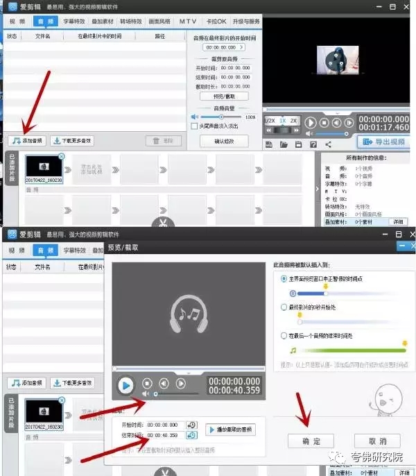 (1)短视频添加背景音乐。如下图所示;把添加进去的音乐进行简单处理,把音乐播放时间截取短一点,再把声音调小,甚至把声音调到静音,以免干扰到原视频的原声,影响用户体验。