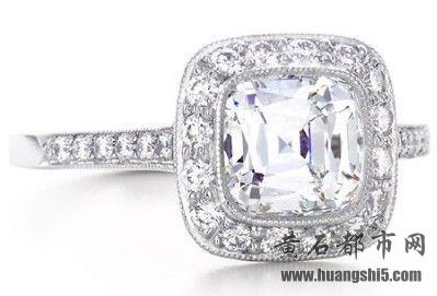 这款方形大钻戒带着浓厚的复古气息。这枚订婚戒指的中间是一颗修整成方形的大钻石,大钻石的四周散步着一些小钻石,这样的设计风格让人想到爱德华七世时的钻戒。这款戒指的售价约为4040美元。