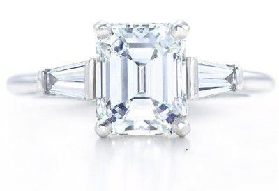 这枚祖母绿琢磨钻戒是Tiffany Setting系列钻石中的一员。钻石的做工精细,有用铂金制作的戒指环,它的市场售价约为4390美元。