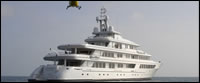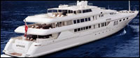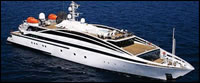 对所有的富人单身汉来说,Apogee都是一个梦想。它就像一艘漂浮的五星级宾馆,这艘205英尺长的油轮配有7个红木装饰的宽敞奢华的房间。席卷世界的《泰坦尼克号》启发了设计者——电梯和楼梯能够连通所有的甲板。它配有一个22英尺长、背光、玛瑙装饰的酒吧,里面有乌利泽点唱机,卡拉OK系统和一个宽敞的露天阳台。花花公子们可以和喜欢的女孩喝酒到太阳升起的时候。船上甚至配有12人极可意浴缸,这会鼓动更多的女孩脱掉衣服投入激情之中。在巴哈马群岛蔚蓝的大海上航行,船上的17名船员能够保证你们的一切。