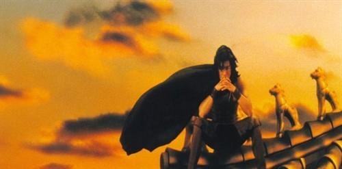 记忆最深刻的还属云坐在屋顶帅酷的场面,血红的夕阳残云,黑色的斗篷,蓝色的卷发,加上郭富城的肌肉,营造出一个完美的画面。当时就听人说,都说郑伊健留长发很帅,可是当一头长发,还染成蓝色再带点卷的郭富城一登场,那真是相当的惊艳啊!