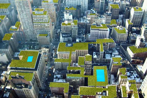 市中心两百栋大楼顶上的“绿屋顶”,非常壮观