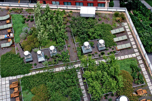 芝加哥的绿化就做得很好。12000公顷的公园环绕着市区,栽植了五十多万棵树木,伴着住宅、商店和办公楼,提供市民很好的休闲去处。而更特别的是在200幢大楼上,覆盖植物的 “绿色屋顶”。