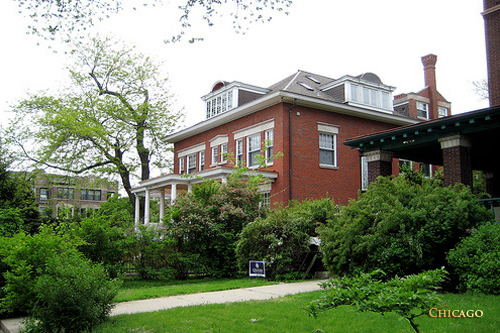 美国总统奥巴马在芝加哥的住家,红砖楼房被绿树拥抱着