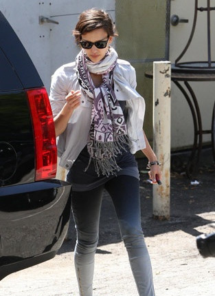 Alessandra Ambrosio,展现酷感就用这样的硬朗围巾