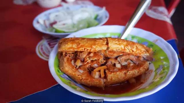 17. 在墨西哥的瓜达拉哈拉(Guadalajara),我发现即使是最严重的宿醉,也会被奇辣无比却又极其美味的辣猪肉三明治驱赶得无影无踪。