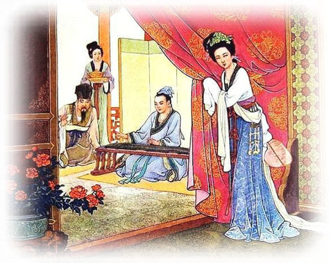临邛富人卓王孙得知“(县)令有贵客”,便设宴请客结交,相如故意称病不能前往,王吉亲自相迎,相如只得前去赴宴。卓王孙有位离婚女儿,名文后,又名文君。因久仰相如文采,遂从屏风外窥视相如,司马相如佯作不知,而当受邀抚琴时,便弹奏了一曲《凤求凰》: