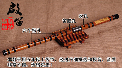曲笛:因伴奏昆曲而得名,又叫班笛、市笛或扎线(即缠丝)笛,因盛产于苏州,故又有"苏笛"之称。这种笛子多为C调或D调,管身粗而长,可能是大横吹的遗制。音色浑厚而柔和,清新而圆润。广泛流行在我国南方各地,最适于独奏或合奏,是江南丝竹、苏南吹打、潮州笛套锣鼓等地方音乐和昆曲等戏曲音乐中富有特色的重要乐器之一。