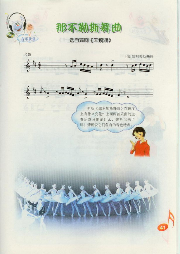 《船歌》(选自《霍夫曼的故事》)。法国著名的喜歌剧作曲家奥芬巴赫所作,原为歌剧《霍夫曼的故事》中的二重唱曲,后被改为多种音乐演奏形式,“船歌”又称“威尼斯船歌”,它也是一种音乐体裁的名称。门德尔松及肖邦亦有类似体裁的作品。