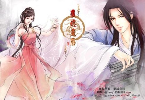 这是痕迹为乐小米的文《美人如玉剑如虹》和《谁教白马踏梦船》所作的封面和插图,男子为段青衣,女子为丁小仙: