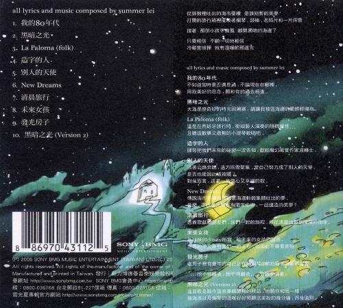 雷光夏17岁高中毕业前夕创作了‘逝’,在校园中以骊歌型式传唱至今。这些代表了雷光夏青春稚嫩年代的音乐创作,回顾这些作品,当时人事地物与音乐对应的关系早已移位。回顾这些作品,以更接近原创的概念来重新录制,适度地修正了因太过于年轻而无法完全表现出来的音乐跟画面的对应关系。
