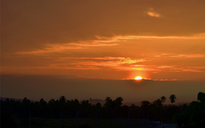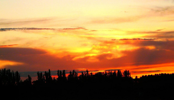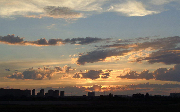 太陽已經下山,金色的雲彩微微的照亮著傍晚的天空