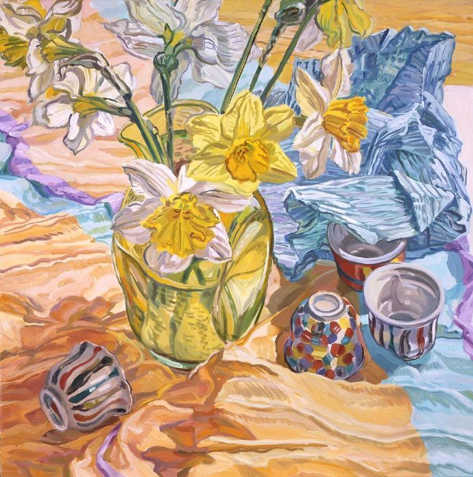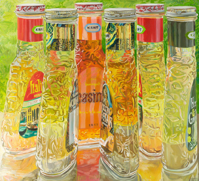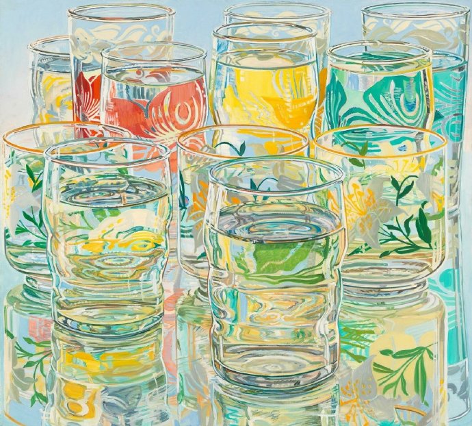 珍妮特·费诗(Janet Fish)1938年生于波士顿,是著名的当代美国艺术家。她的作品有别于传统的静物绘画,呈现出夺目的色彩和明亮感,用独特的笔触引导着人们的眼睛透过绘画上那透明的表面和繁复的图案。其作品被众多公共机构收藏,比如大都会艺术博物馆、惠特尼美国艺术博物馆、波士顿美术馆、芝加哥艺术学院、底特律艺术馆、耶鲁大学艺术馆以及宾夕法尼亚美术学院等。