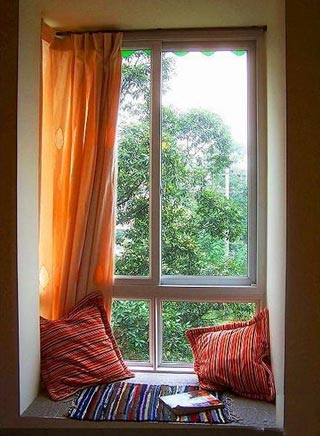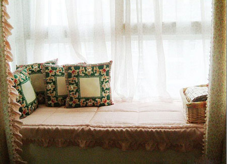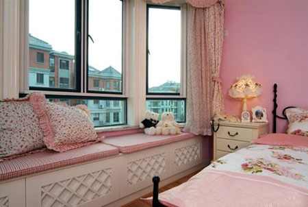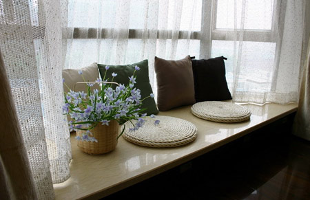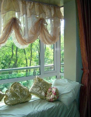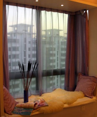 什么叫飘窗?就是指呈矩形或梯形向室外凸起,三面都装有玻璃的大窗户。大块采光玻璃和宽敞的窗台,使人们有了更广阔的视野,更赋予生活以浪漫的色彩。如果你自认是小资一族,那就一定会被飘窗的魅力所俘虏。一个抱枕,一杯清茶,一本小书,日则看蓝天白云,夜则观明月星辰,飘窗上的生活是最能体现小资情调的。